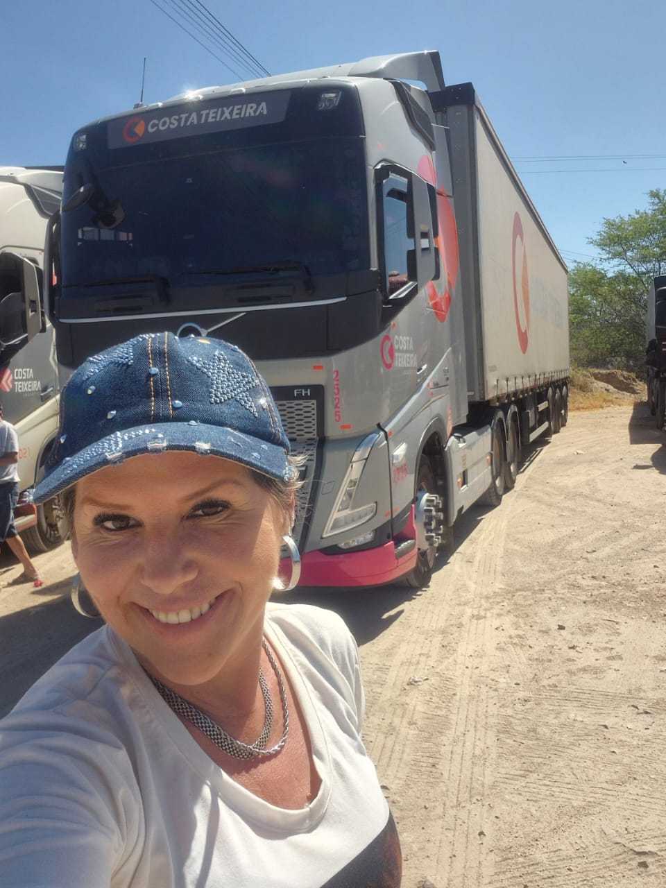 É nesse cenário que vive Kênia Martins Fehlauer. Há 9 anos na profissão, ela dirige para a Costa Teixeira Transportes e cruza o Brasil levando bobinas, MDF, sal, embalagens, betonita — e uma bagagem que não aparece no tacógrafo: a saudade.
